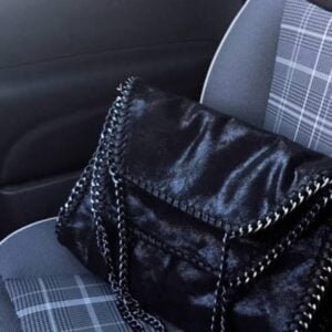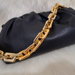 Bolsa em Couro Preta Alça Dourada